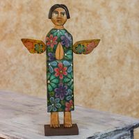 Hand Carved Rustic Pinewood Christian Angel Sculpture 'Healing Angel' Item ID: 2671626039