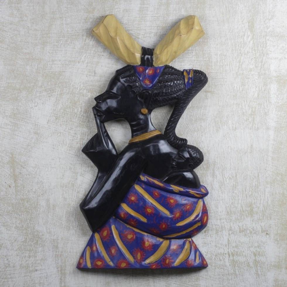 Hand Carved Sese Wood African Woman Wall Art Sculpture 'Hush-a-bye' Item ID: 2671803488