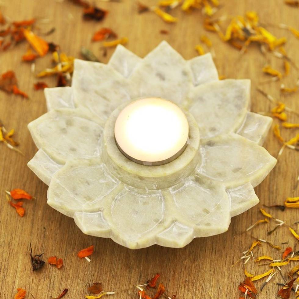 Hand Carved Soapstone Tealight Holder 'Lotus Glory' Item ID: 2671789974