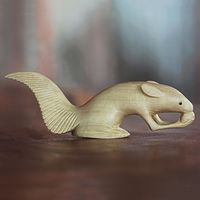 Hand Carved Squirrel Natural Jempinis Wood Statuette 'Feasting Squirrel' Item ID: 2669891722