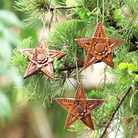 Hand Carved Star-Shaped Holiday Ornaments Set of 3 'Sunny Christmas' Item ID: 2671820992