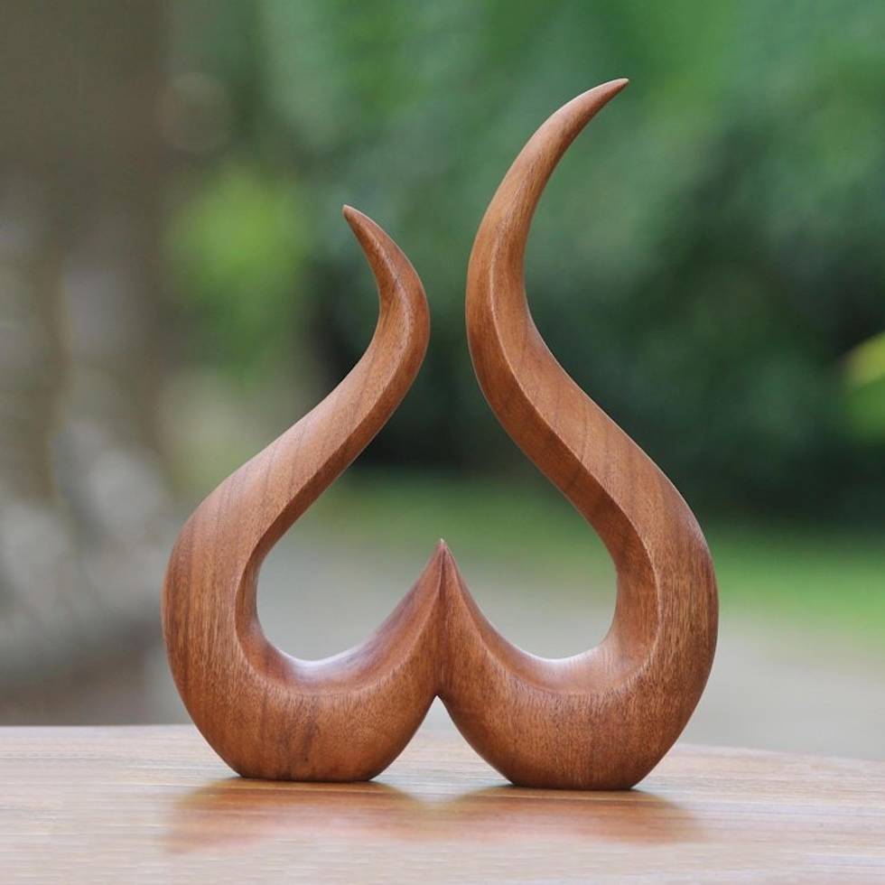 Hand-Carved Suar Wood Abstract Growing Heart Sculpture 'Growing Heart' Item ID: 2671820872