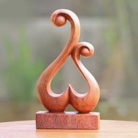 Hand Carved Suar Wood Abstract Heart Sculpture 'Lover's Bloom' Item ID: 2669923276