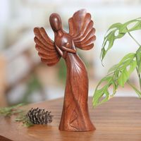 Hand-Carved Suar Wood Angel Sculpture from Bali 'Angel of Warmth' Item ID: 2669891865