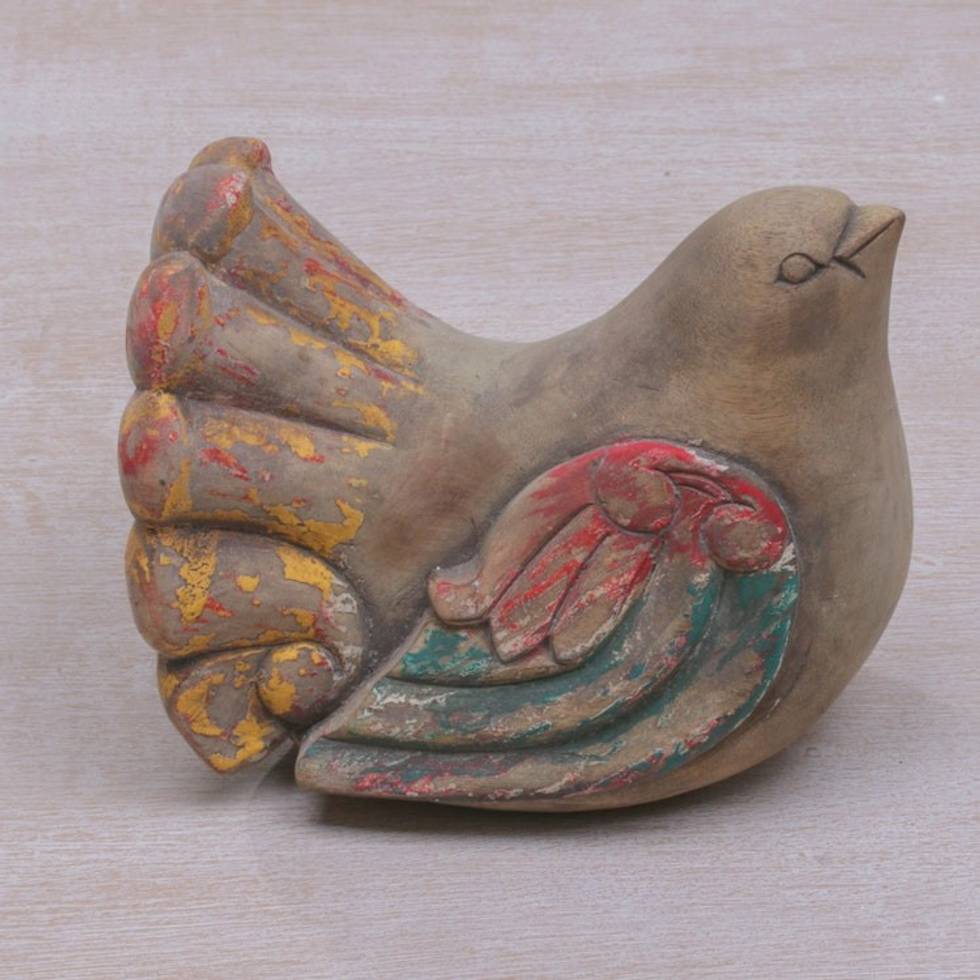 Hand Carved Suar Wood Antiqued Dove Sculpture from Bali 'Antique Dove' Item ID: 2671734864