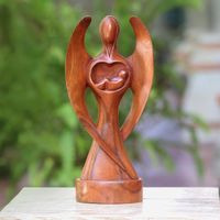 Hand-Carved Suar Wood Baby Guardian Angel Sculpture 'Baby Guardian' Item ID: 2671820871