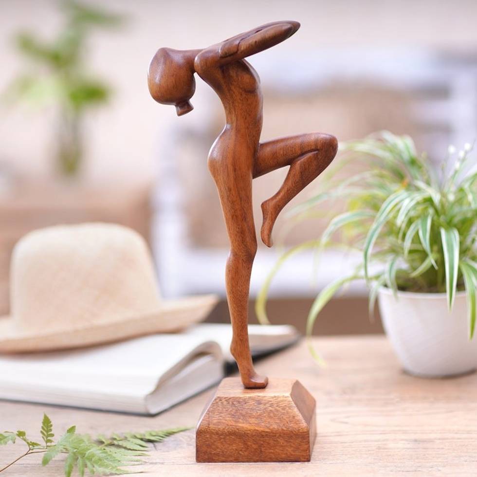 Hand Carved Suar Wood Ballerina Sculpture 'Little Dancer' Item ID: 2669891856