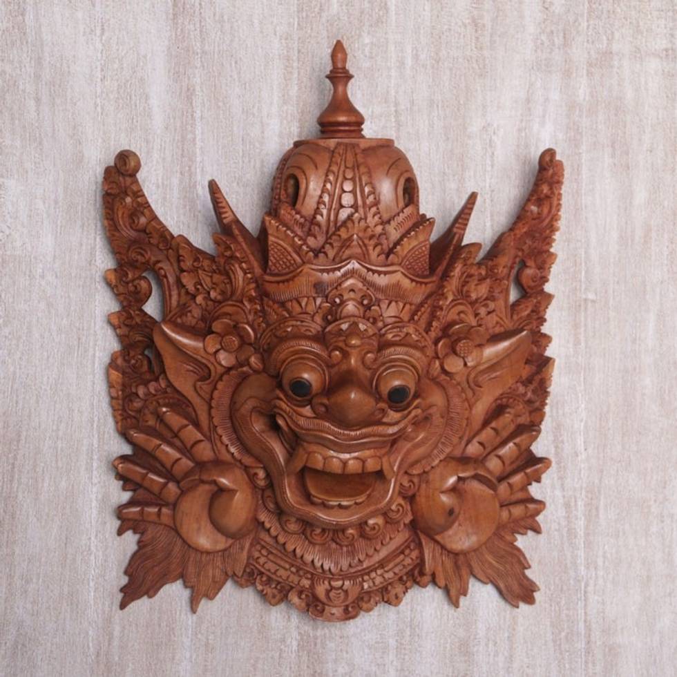 Hand Carved Suar Wood Bhoma Wall Mask from Indonesia 'Bhoma Guardian' Item ID: 2671734329