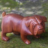 Hand Carved Suar Wood Bulldog Puppy Sculpture from Bali 'Fierce Bulldog' Item ID: 2671734324