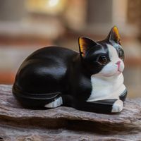 Hand Carved Suar Wood Cat Statuette 'Reclining Cat' Item ID: 2670222159