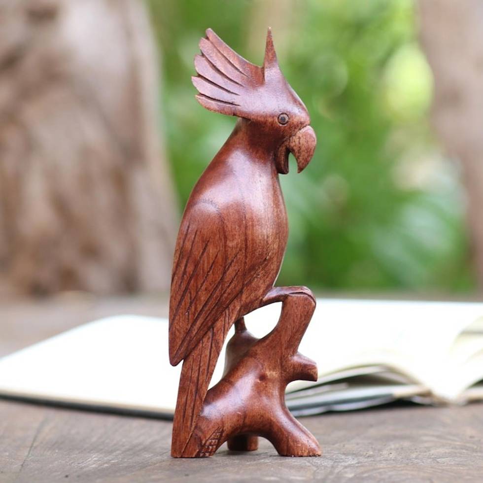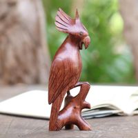 Hand Carved Suar Wood Cockatoo Statuette 'Crested Cockatoo' Item ID: 2669891914