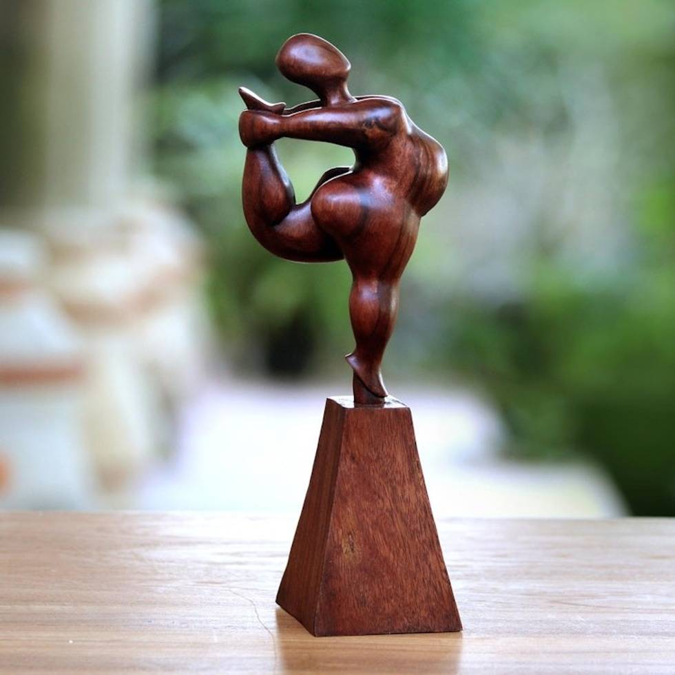 Hand-Carved Suar Wood Female Form Sculpture from Bali 'Leg Stretch' Item ID: 2671736617