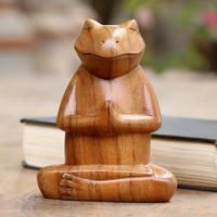 Hand Carved Suar Wood Frog Statuette 'Deep in Meditation' Item ID: 2671745152