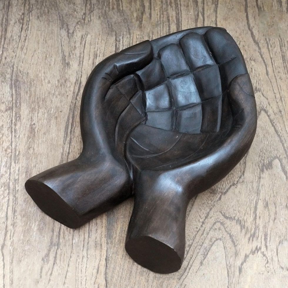 Hand Carved Suar Wood Hand Statuette 'Give Back' Item ID: 2671668715