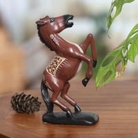 Hand-Carved Suar Wood Horse Sculpture Painted in Bali 'Triumphal Gallop' Item ID: 2669891926