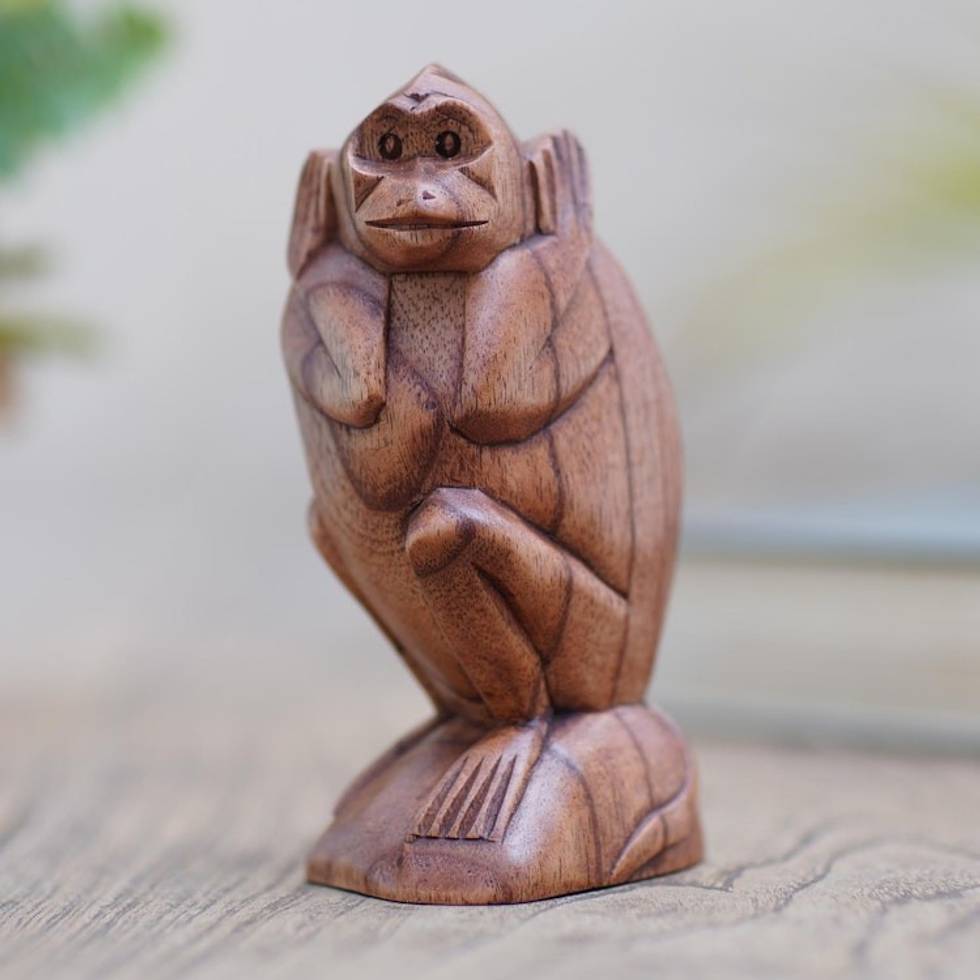 Hand Carved Suar Wood Monkey Sculpture 'Monkey Forest' Item ID: 2671745096