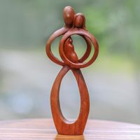 Hand-Carved Suar Wood Parents and Newborn Family Sculpture 'Infant Love' Item ID: 2669891861