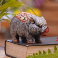 Hand Carved Suar Wood Pig Statuette 'Chubby Swine' Item ID: 2669891941