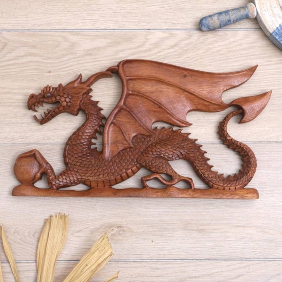 My husband and I visited Bali in 1990 and loved the work of many different artists. Since the Winged Dragon is a protector of the home, this carving is a house-warming gift for our son's first house. The detail is wonderful; the expression fierce and protective. The back of the wings is smooth and shows the wood without carving, providing a peaceful contrast to the forward menace. I love it, and know he will also.