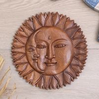 Hand-Carved Suar Wood Relief Panel with Sun and Moon Design 'Divine Universe' Item ID: 2671748083