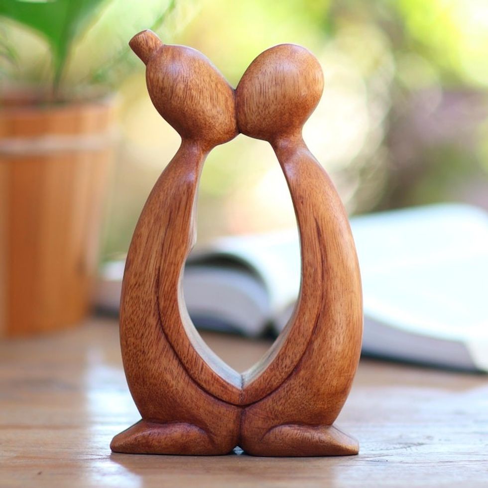 Hand Carved Suar Wood Romantic Statuette from Bali 'Kissing You' Item ID: 2669909240