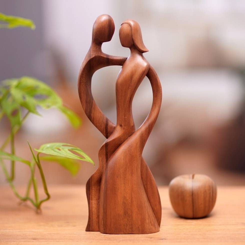 Hand-Carved Suar Wood Sculpture of a Dancing Couple 'Shadow Dance' Item ID: 2669923431