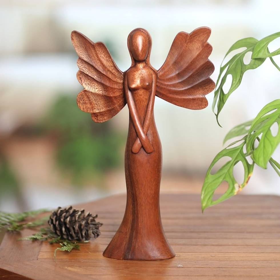 Hand-Carved Suar Wood Sculpture of an Angel from Bali 'Angel of Kindness' Item ID: 2669923350