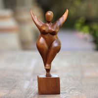 Hand Carved Suar Wood Sculpture of the Female Form 'Curvy and Happy' Item ID: 2669891835