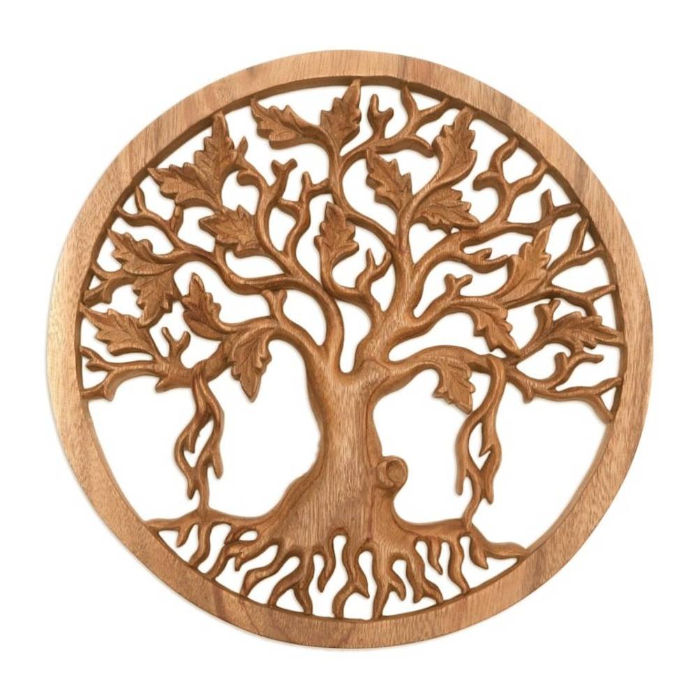 Hand-Carved Suar Wood Tree Relief Panel from Bali 'Giant Tree' Item ID: 2671479599