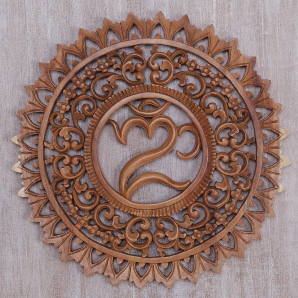 Hand Carved Suar Wood Wall Panel by Indonesia Artisan 'Omkara Altar' Item ID: 2671733088
