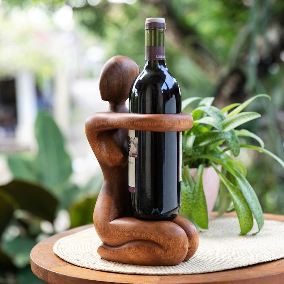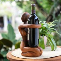 Hand Carved Suar Wood Wine Bottle Holder 'The Offering' Item ID: 2671700230