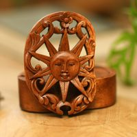 Hand-Carved Sun-Themed Suar Wood Puzzle Box from Bali 'Sun's Mystery' Item ID: 2671558680