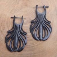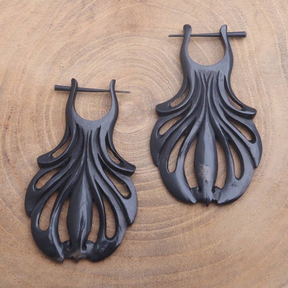 Hand Carved Water Buffalo Horn Shell Motif Hoop Earrings 'Graceful Fanfare' Item ID: 2671478857