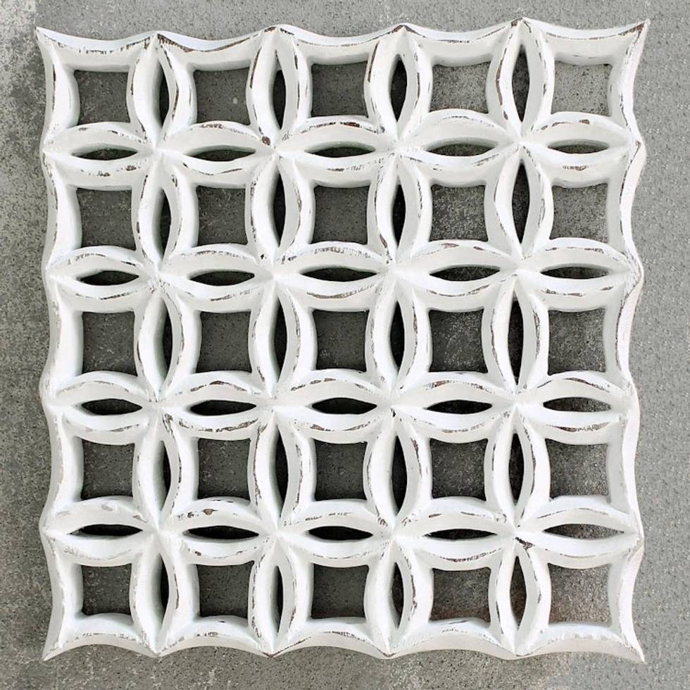 Hand Carved Whitewashed Wood Wall Relief Panel from Thailand 'Flower Plot' Item ID: 2671802302