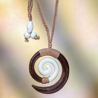 Hand Carved Wood and Bone Macrame Necklace 'Hypnotic Borneo' Item ID: 2669920759