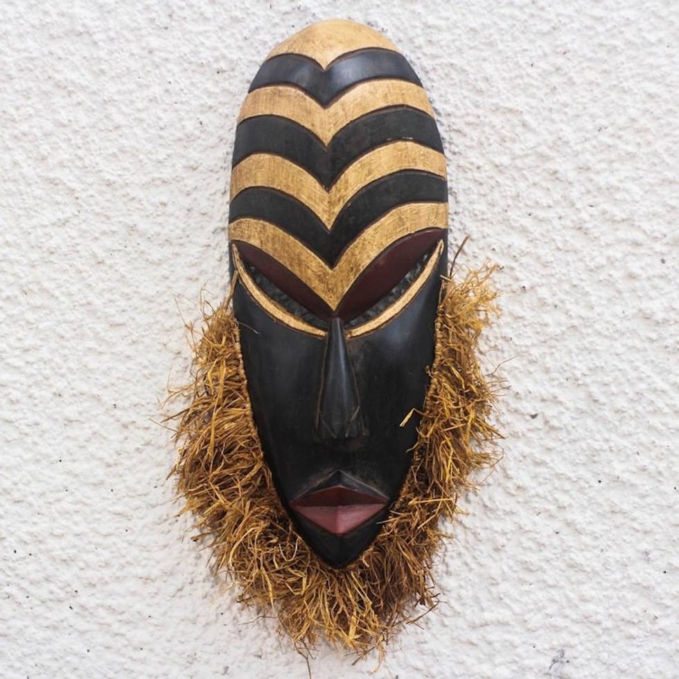Hand Carved Wood and Raffia African Mask from Ghana 'Sweet Agbevivi' Item ID: 2671803566