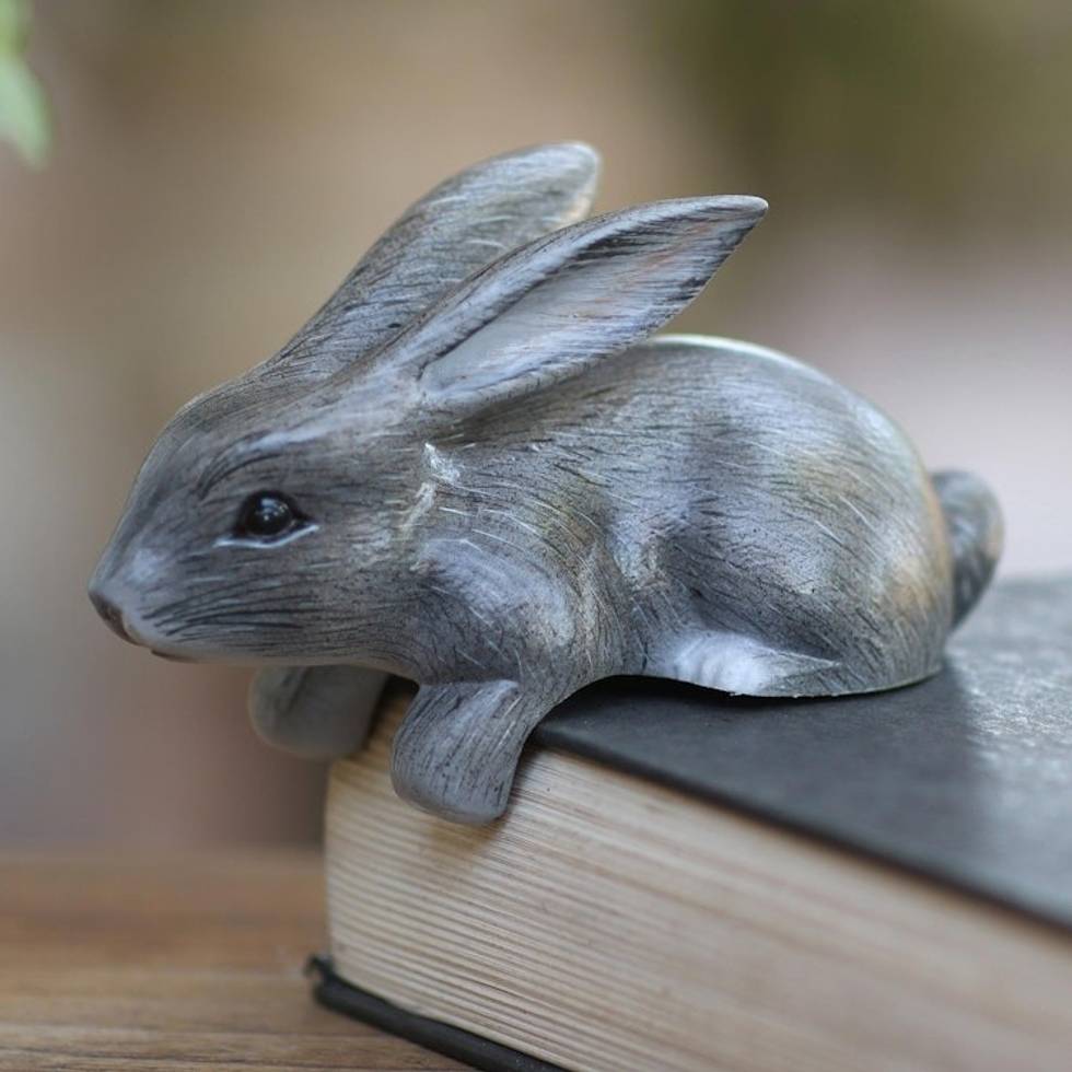 Hand Carved Wood Bunny Statuette in Grey 'Curious Rabbit in Grey' Item ID: 2671737748