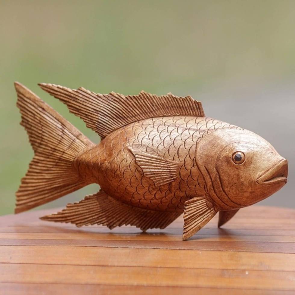 Hand Carved Wood Detailed Sculpture 'Goldfish' Item ID: 2671483629
