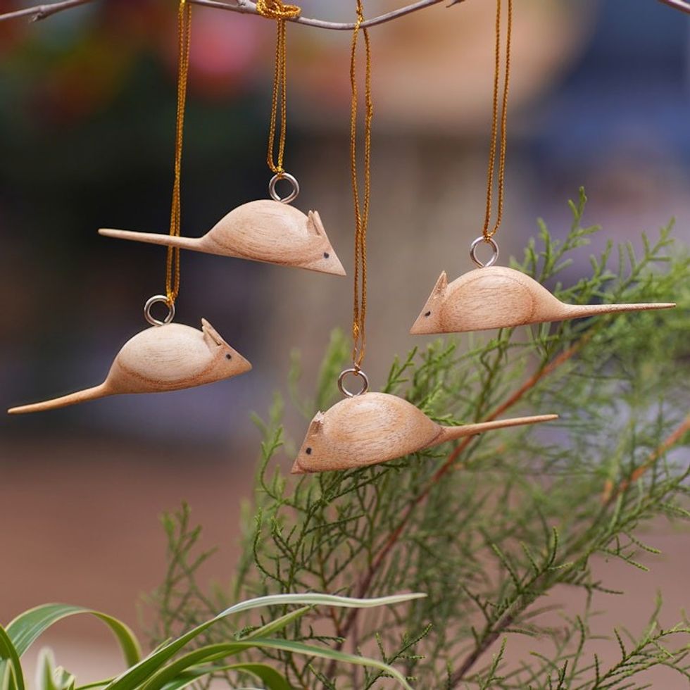 Hand-Carved Wood Mouse Christmas Ornaments Set of 4 'Tiny Mice' Item ID: 2671763466