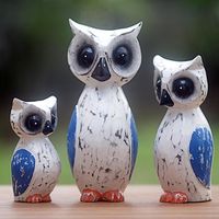 Hand Carved Wood Owl Sculptures Set of 3 from Indonesia 'Wise Family' Item ID: 2671732338