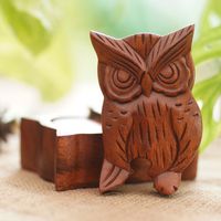 Hand Carved Wood Puzzle Box Owl Shape from Indonesia 'Serious Owl' Item ID: 2669891867