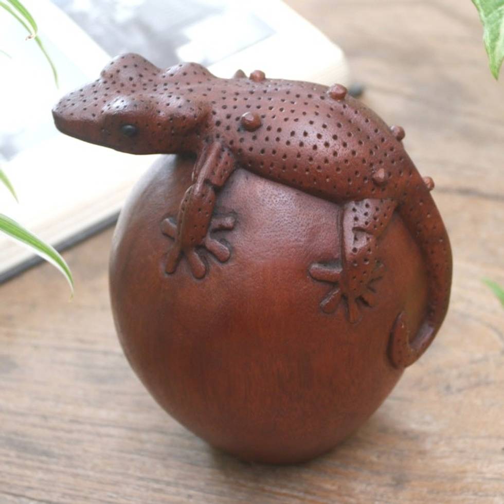 Hand Carved Wood Sculpture of a Gecko from Indonesia 'Watching Gecko' Item ID: 2671702262