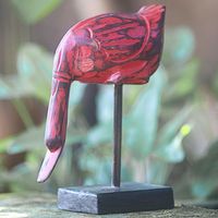 Hand Carved Wood Sculpture of a Red Duck from Indonesia 'Red Duck' Item ID: 2671702112