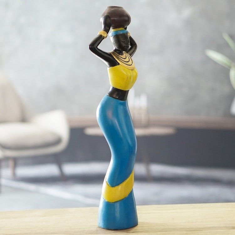 Hand-Carved Wood Sculpture of African Woman with Pot 'African Woman with Pot' Item ID: 2671804065