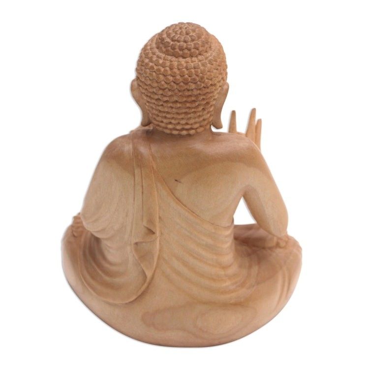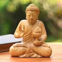 Hand-Carved Wood Sculpture of Buddha Holding Fire 'Buddha's Fire' Item ID: 2671736501