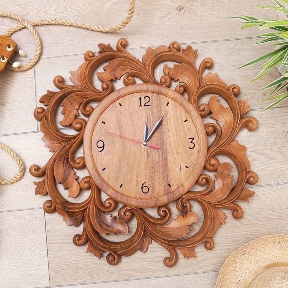 Hand-carved Wood Wall Clock from Bali 'Time to Blossom' Item ID: 2671747855