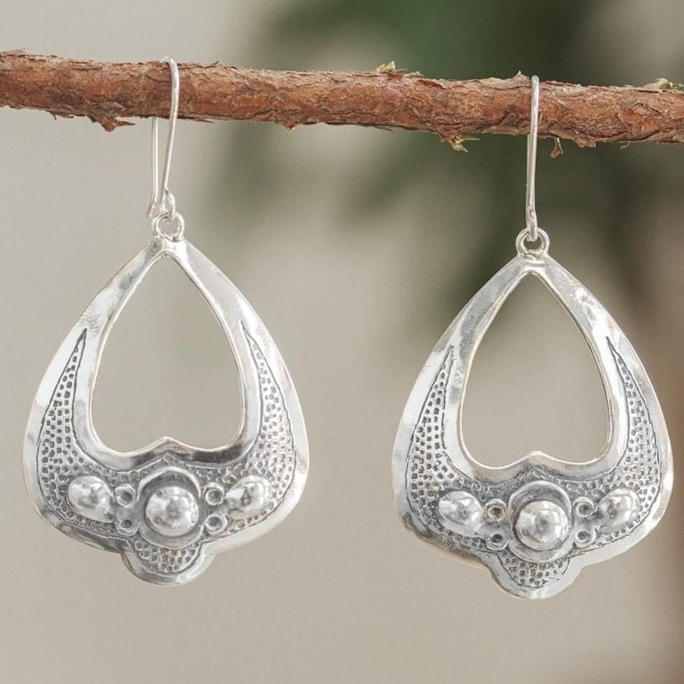 Hand Cast Sterling Silver Dangle Earrings 'Mysterious Moment' Item ID: 2671640271