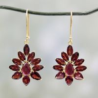 Hand Crafted 18k Gold Plated Earrings with Garnets 'Claret Sunburst' Item ID: 2671652088