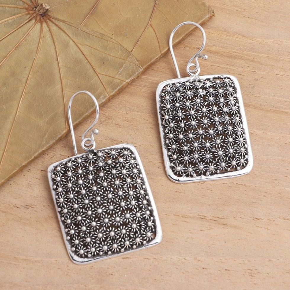 Hand Crafted 925 Sterling Silver Dangle Earrings 'Sparkle Lights' Item ID: 2671482773