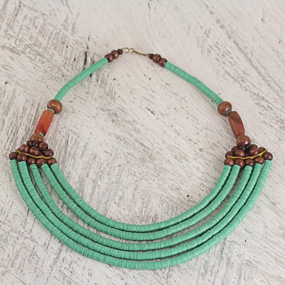 Hand Crafted Agate and Wood African Green Beaded Necklace 'Wend Panga in Green' Item ID: 2671803640